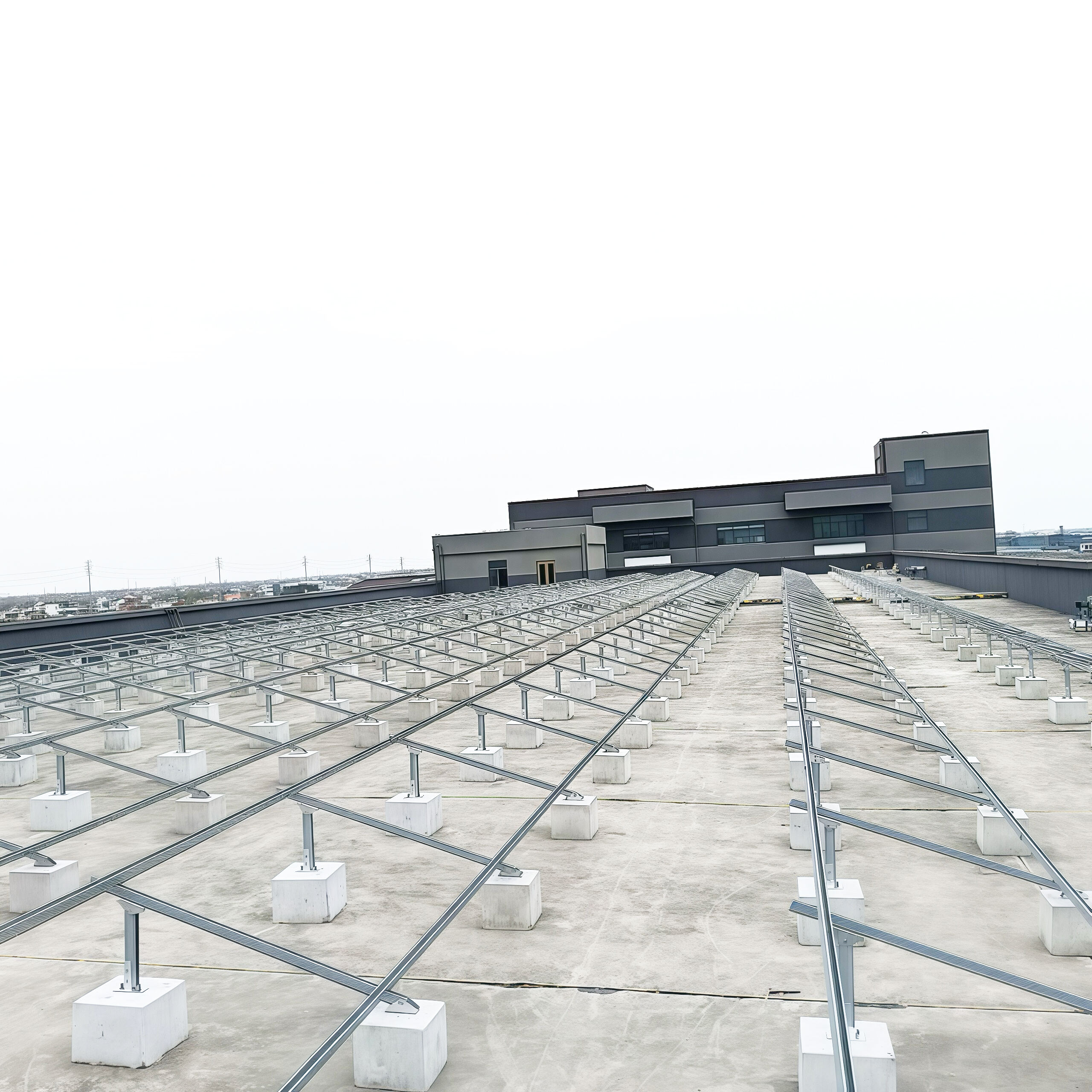 Concrete rooftop solar bracket system: U-steel brackets bolt-installed on-site (no welding), 3m/6m lengths, galvanized. Automated production cuts costs, 300 tons in stock for quick delivery. Welcome to inquire.